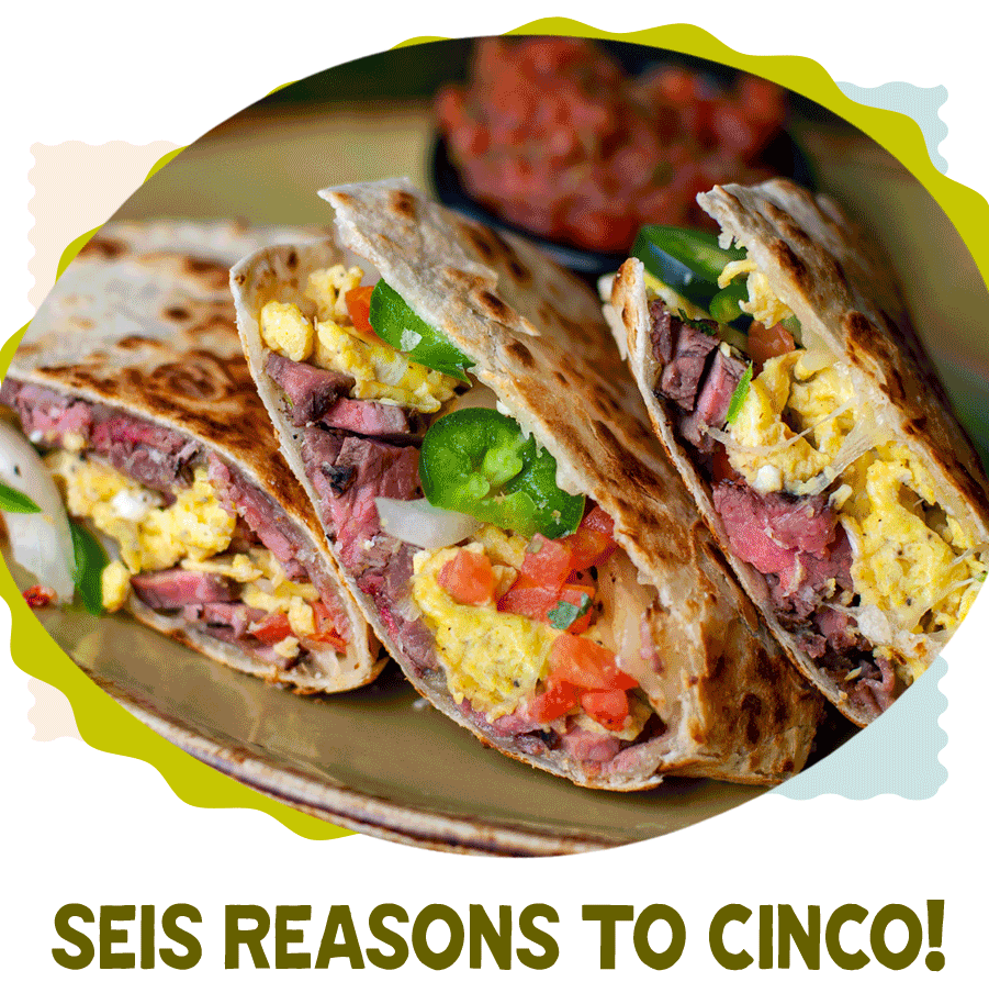 From 10am-noon, enjoy three Mextra special breakfast entrees: Mad Mex Breakfast Burrito, Scrambled Egg Avodilla and the Steak & Egg Quesadilla!